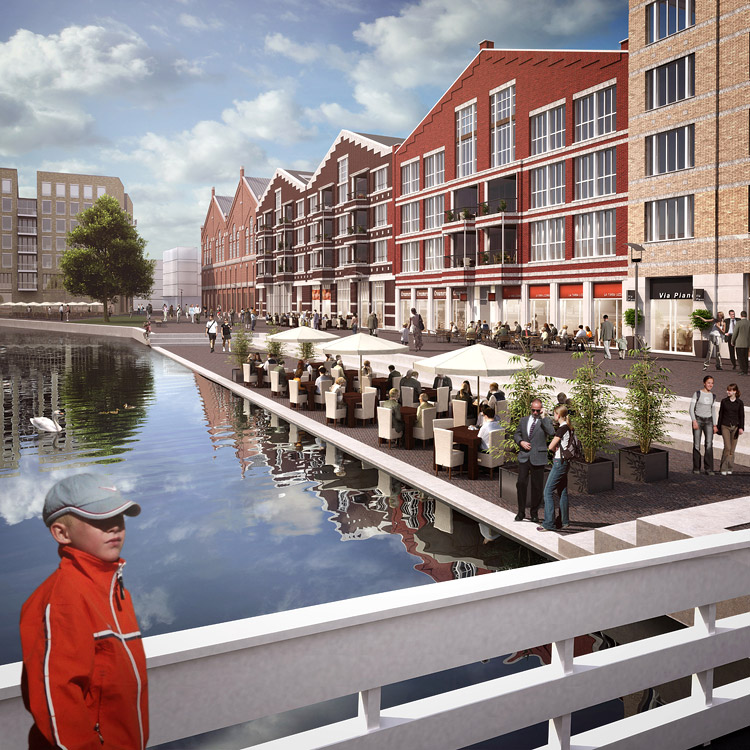 750 woningen, 30.000m2 bedrijfsruimte, 2 laagse garage.